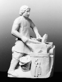 Depuis l’Antiquité, on parle d’un dieu du feu et du métal : Ptah chez les Égyptiens, Héphaistos en Grèce, puis Vulcain chez les Romains. La croyance selon laquelle un fer à cheval porte bonheur tire son origine de la légende suivante : un jour, le diable aurait demandé à un saint forgeron de ferrer ses pieds fourchus. Dans l’opération, le saint lui fit si mal que le diable se promit de ne plus jamais entrer là où il verrait un fer à cheval. La principale activité du forgeron était le ferrage des chevaux et dans une moindre mesure la fabrication d’objets de ferronnerie, la trempe d’outils et les réparations. Avec la disparition du cheval comme moyen de transport et l’abandon des campagnes au XIXe siècle, les forgerons traditionnels vont quasiment disparaître.